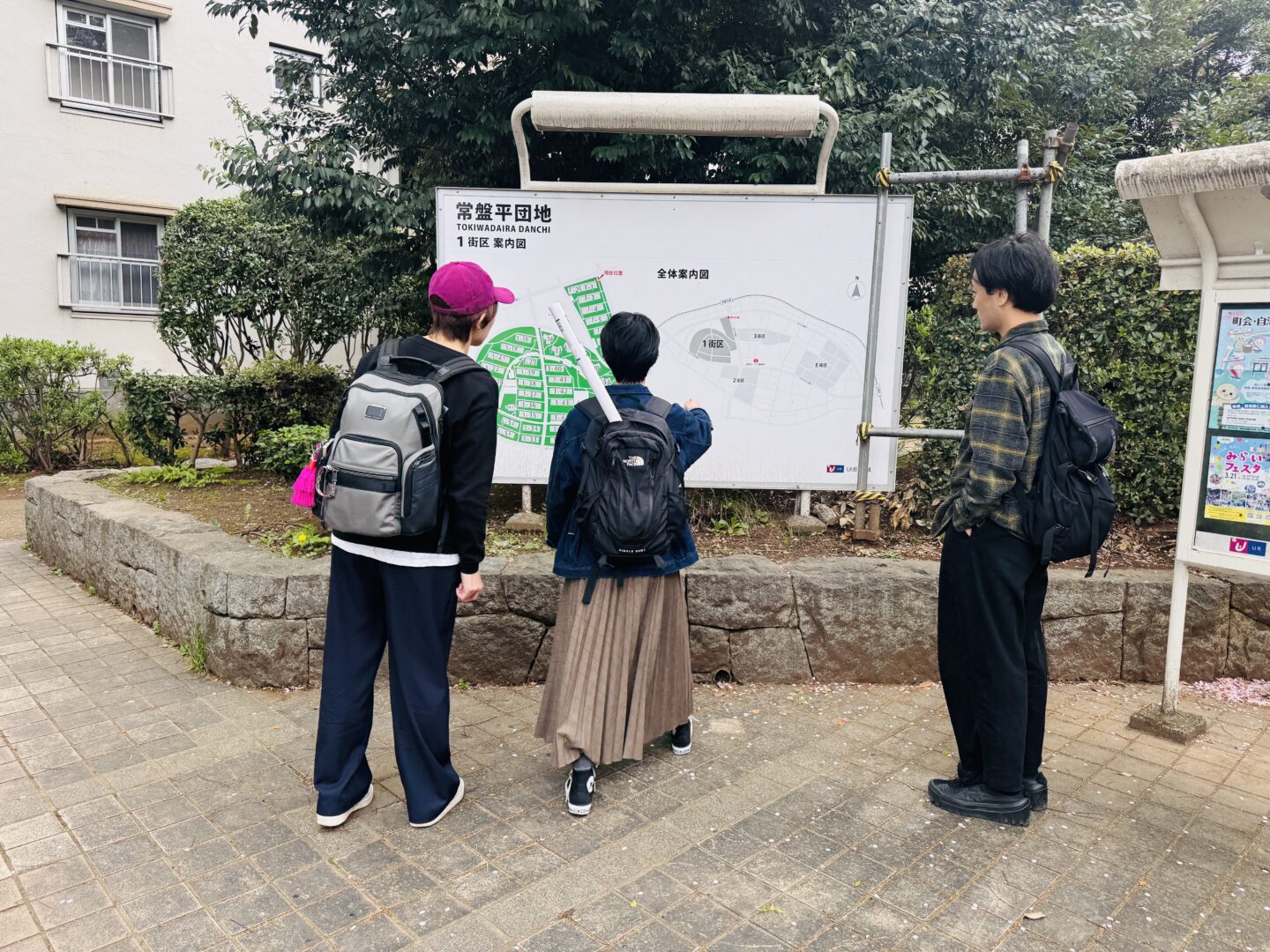 常盤平で拠点づくりに取り組むメンバーがガイドをつとめ、まずはまちあるきから。