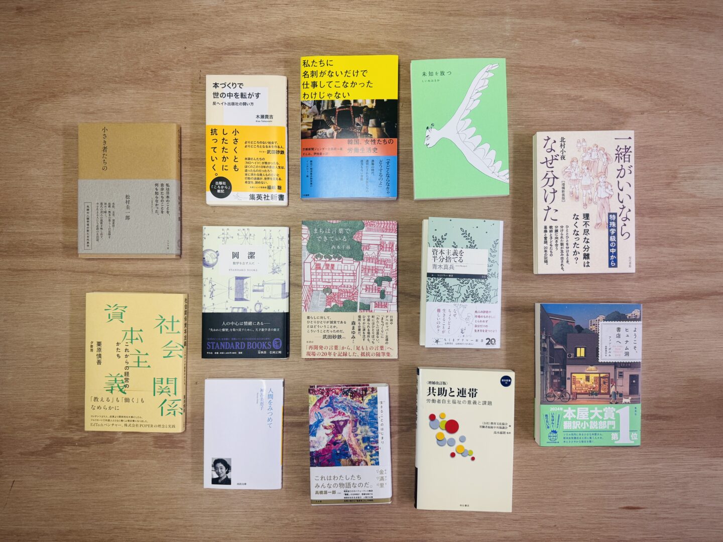 文化、福祉、まちづくりなどに関わるきてんメンバーはそれぞれ興味ある本を購入しました。店主さんに丁寧な説明やおすすめをいただけるのも嬉しい。あと、それぞれが買った本を前に「何に惹かれたか」と紹介し合う時間も楽しかったです!